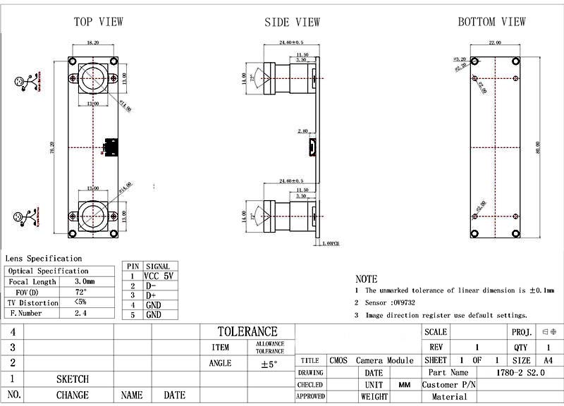 | Module Size | 80mm *22mm *24.6mm±0.5MM |