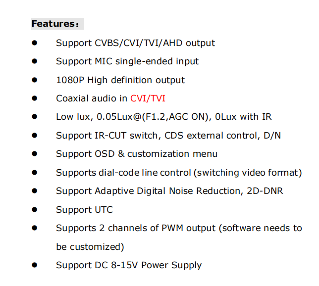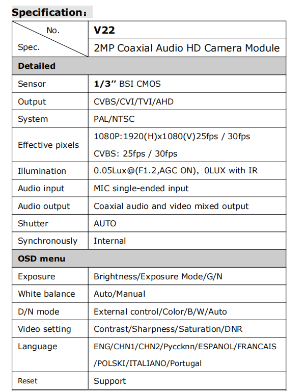V22 CV2003+FH8537H 2MP LOW LUX PCB board 1/3" CMOS CCTV Camera Module CVI&TVI Audio
