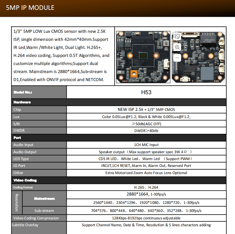 Real 5MP Full Color IP CCTV Security Camera PCB Board 30FPS SSC SOC+ SC CMOS Support IR Led Warm /White Light Dual Light