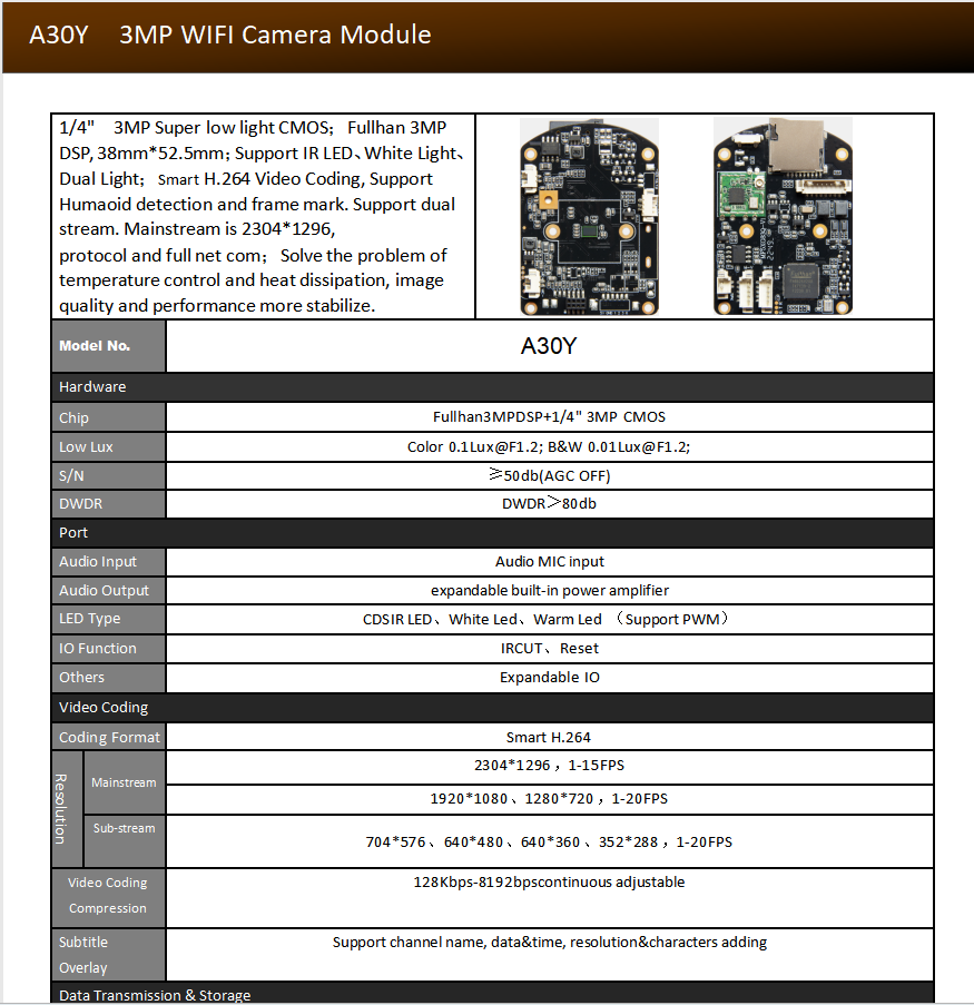 3MP Cloud Camara Module 1/4" CMOS WIFI PCB Board A30Y