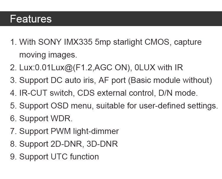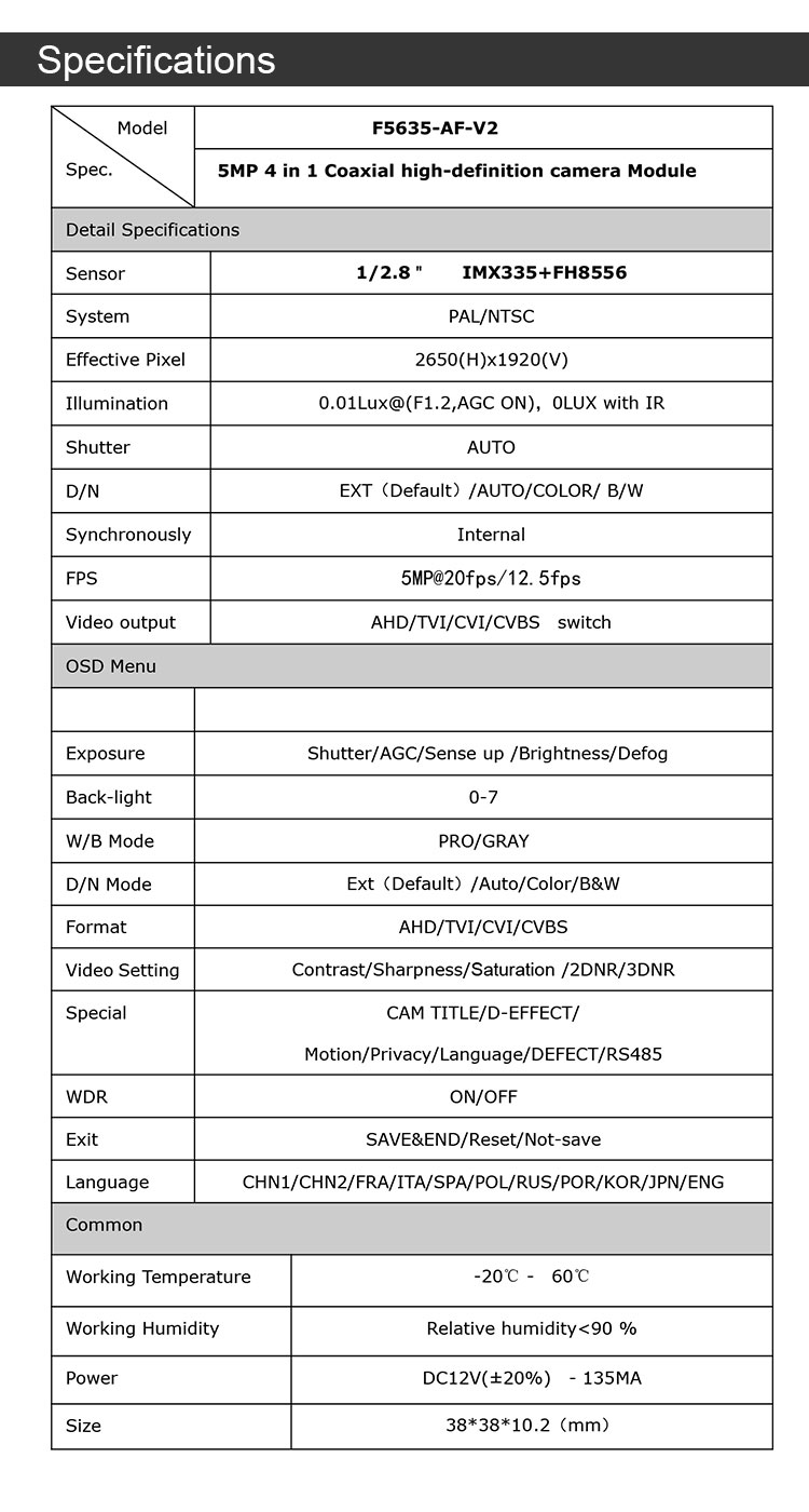 IMX335+FH8556 5MP LOW LUX HD PCB board 1/2.8" CMOS CCTV Camera Module Support DWR