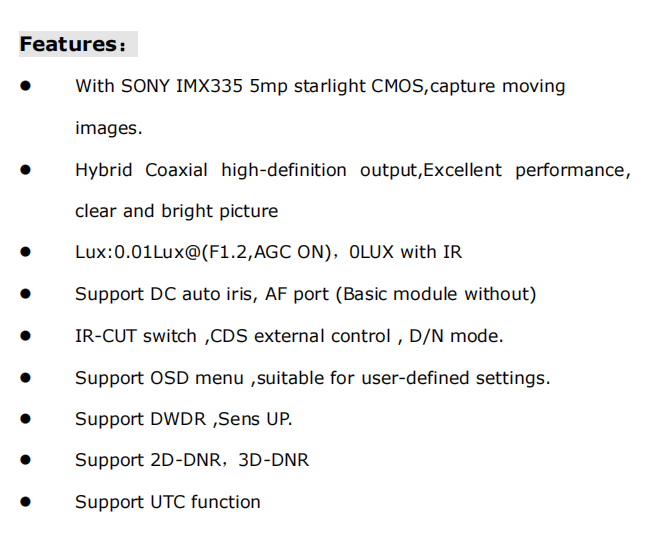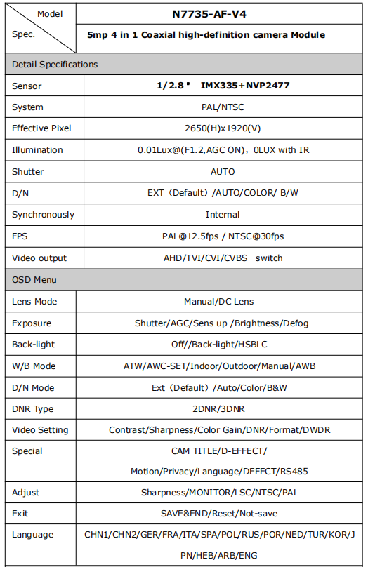 IMX335 + NVP2477H 5MP LOW LUX HD PCB board 1/2.8" CMOS CCTV Camera Module