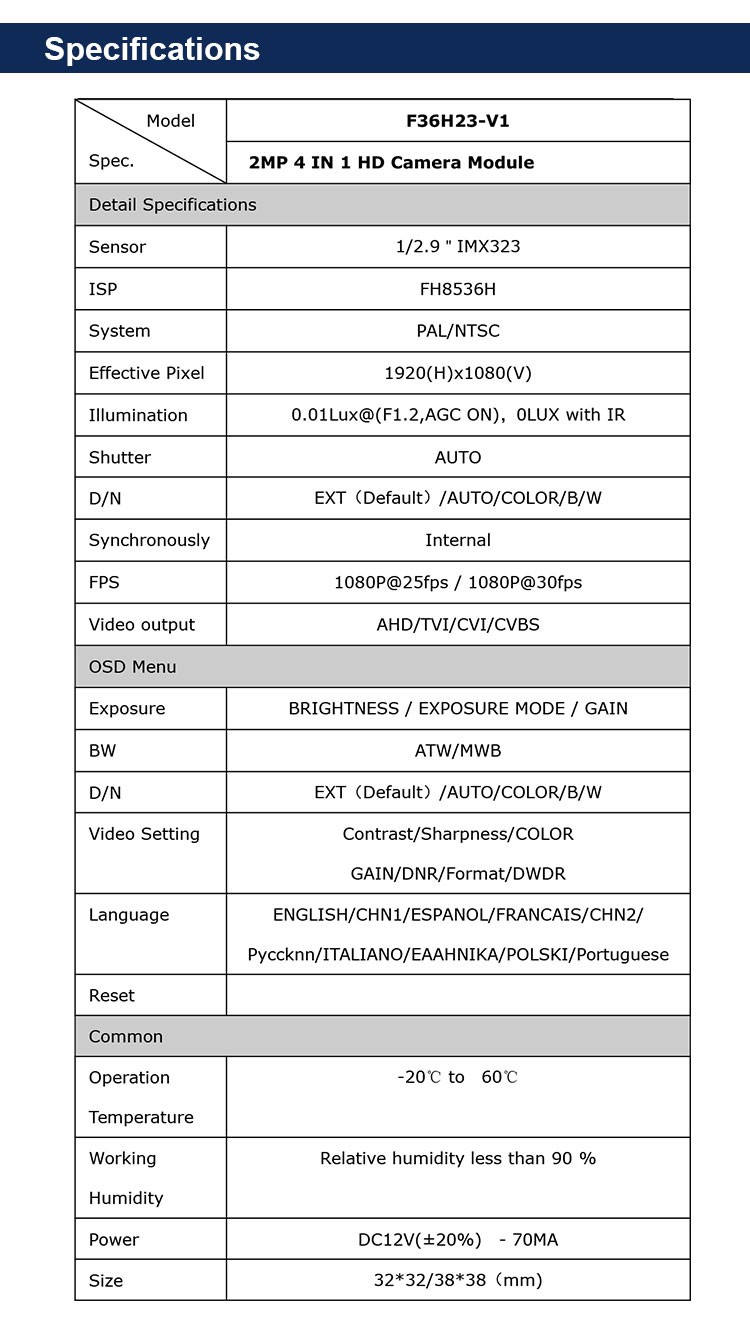 Low lux 1080P Analog HD PCB Board 3DNR Good quality for night vision Support OSD/UTC