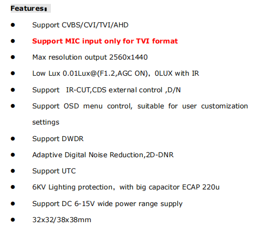 1080P PCB Board 0.01Lux Analog HD CCTV Security Camera Module Support TVI OSD UTC 2DNR