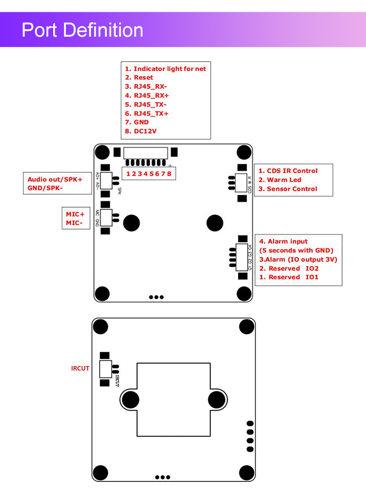 IO Function | IR CUT, 1CH RESET, Alarm In, Alarm Out |
