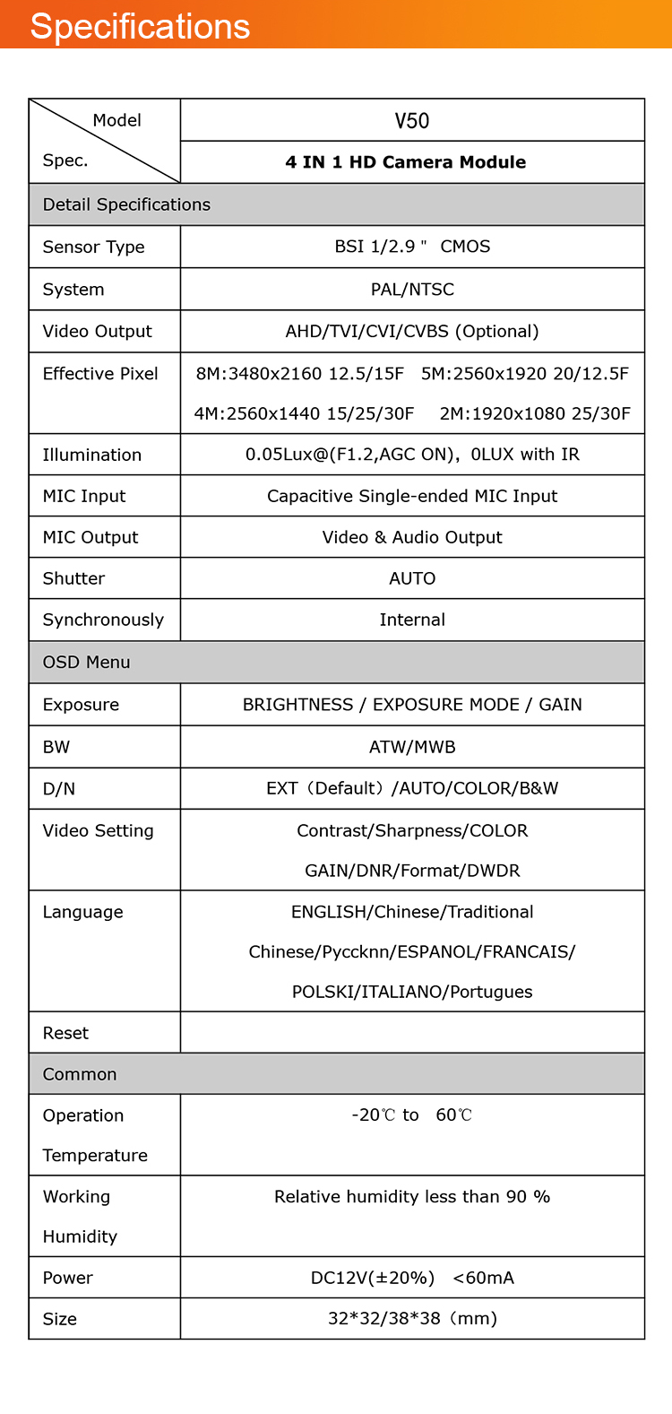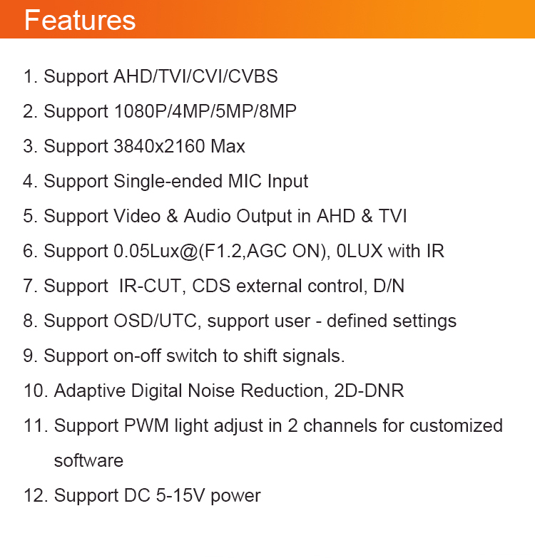 Video output | AHD/TVI/CVI/CVBS |