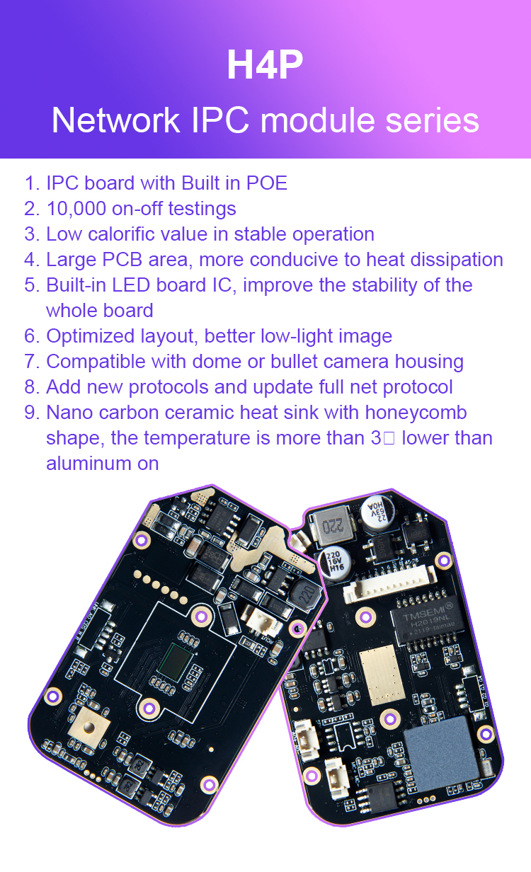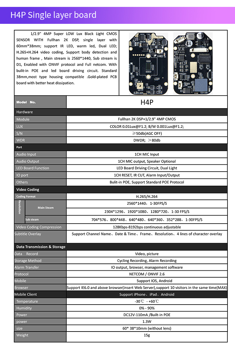 Black light CMOS 4MP color low lux IP Camara Module H4P PCB support Human Recognition&mark human frame