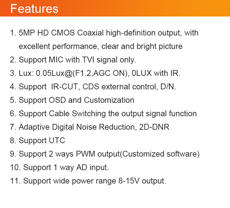 Video output | AHD/TVI/CVI/CVBS (Optional) |