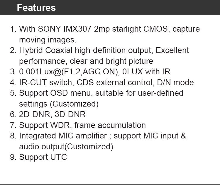Spec | 2mp 4 in 1 WDR Coaxial high-definition starlight camera Module |