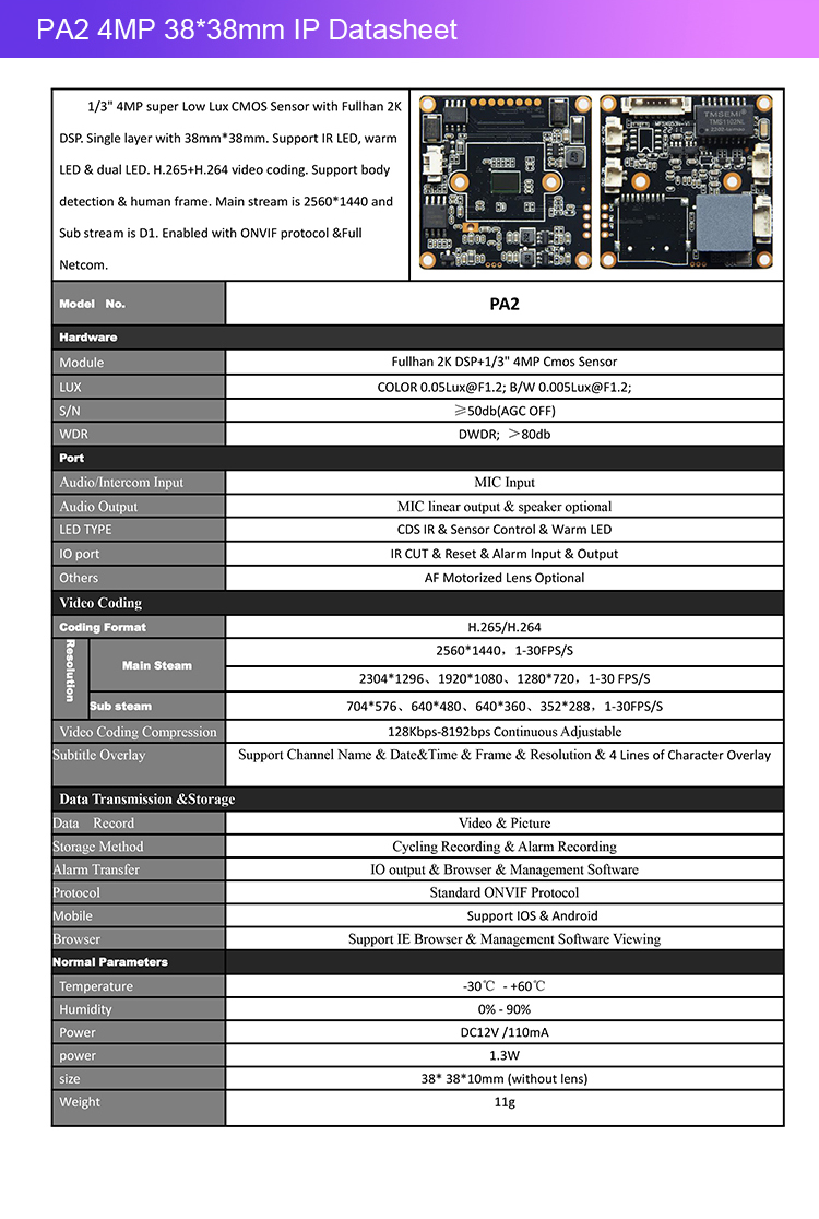 4MP Starlight H.265 IP Camera Board Full Color Image Support Warm Light +Dual Light+IR LED Light