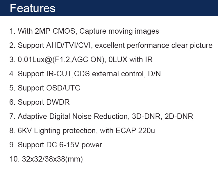 Spec. | 2MP 4 IN 1 HD Camera Module |