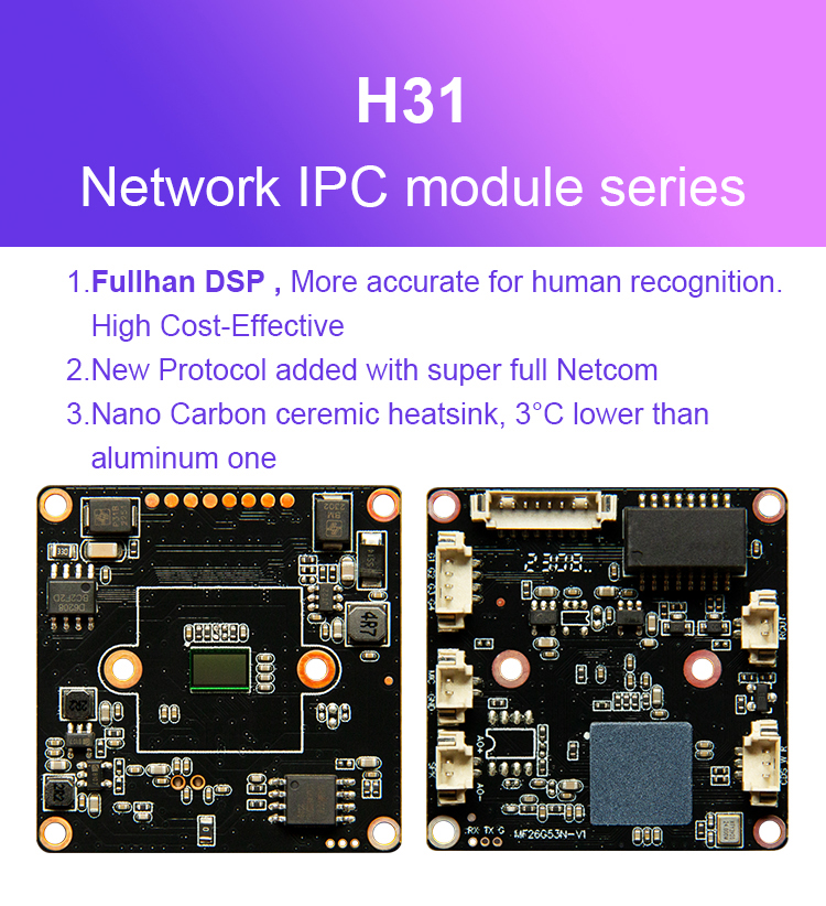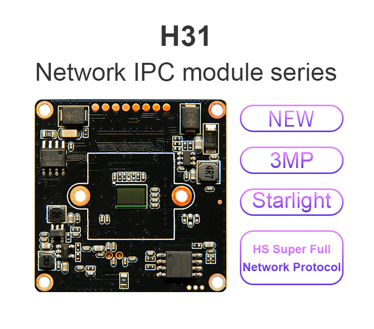 3MP 38 x 38mm IP camera board Smart H. 264 Warm Light Dual Light CCTV camera module
