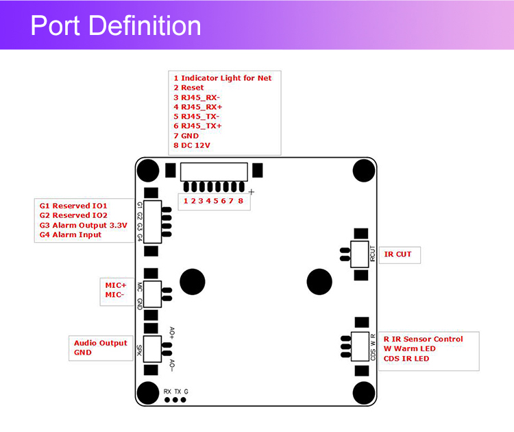 IO Function | IR CUT, 1CH RESET, Alarm In, Alarm Out | |