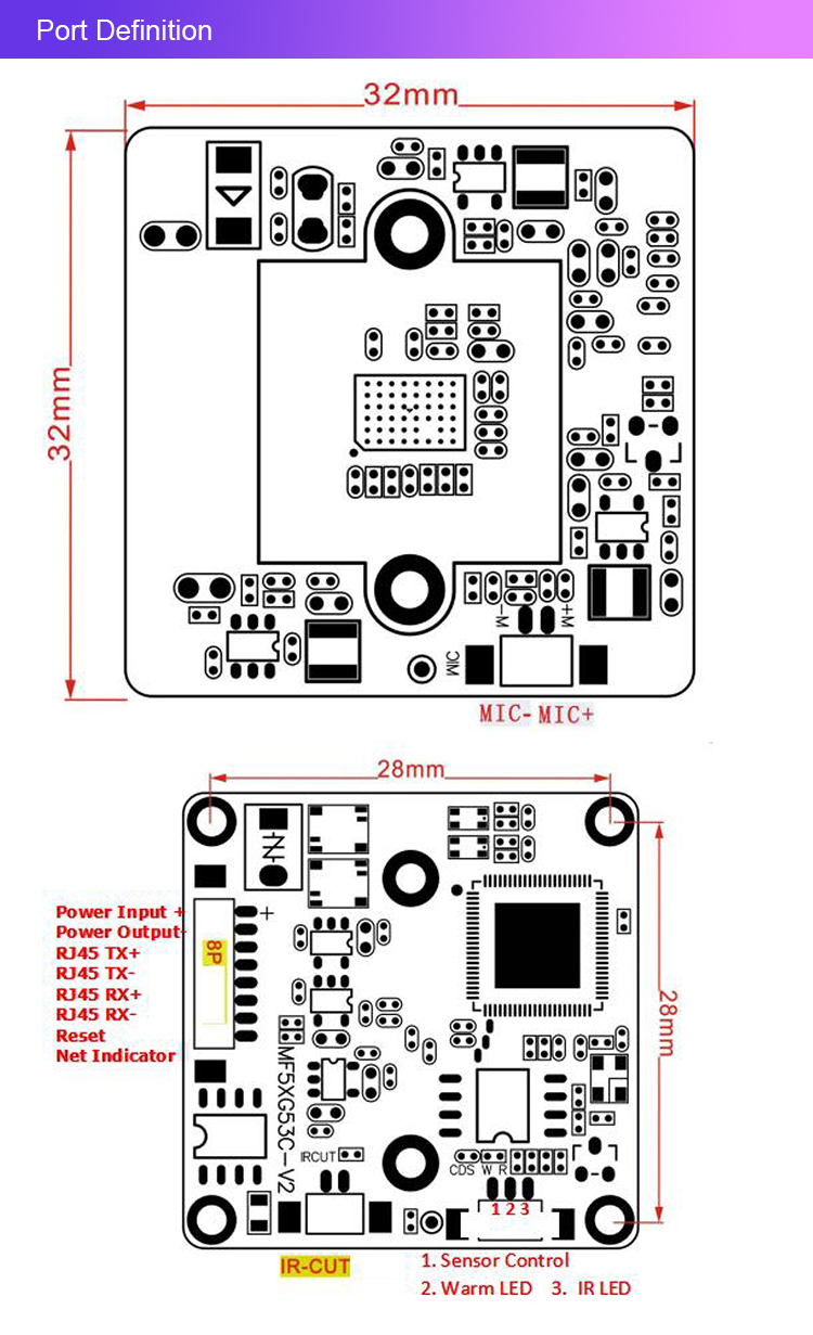 32x32mm MINI size 4MP H.264 H.265 Low Illumination network IP Camera module Board