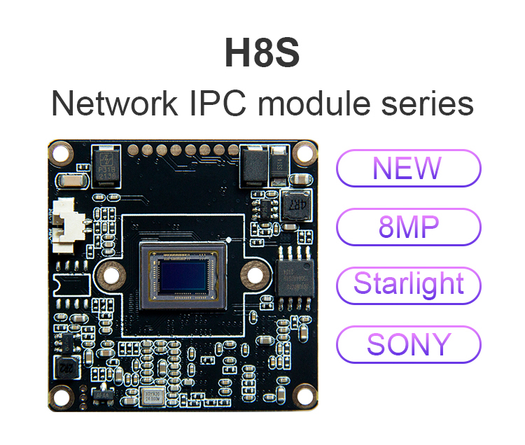 0.001Lux 3840*2160 Pixel Starlight 8MP NIGHT VISION H.265 38*38mm IP camera PCB module