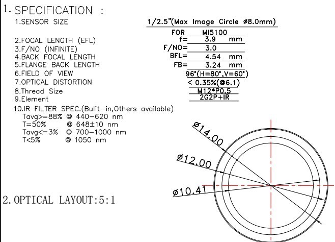 1/2.5 8mm sensor cctv lens EFL 3.9mm hfov 80 degree m12 lens for cctv camera optical lens