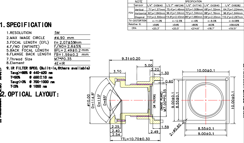 M12 2.07mm F2.6 dark light lens for night vision 5MP telephoto lens HD starlight long-focus large aperture lens