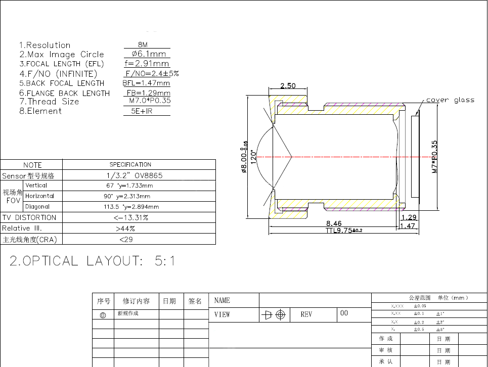 | Image Circle | 1/3.2" OV8865 |