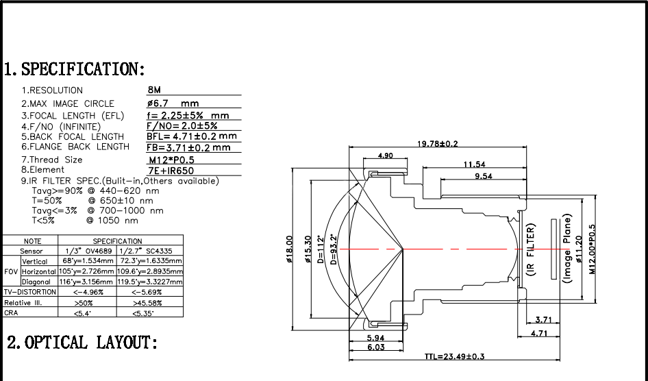 1/3"OV4689 F2.0 single glass M12 pinhole lens for doorbell pinhole fixed focus security monitoring lens