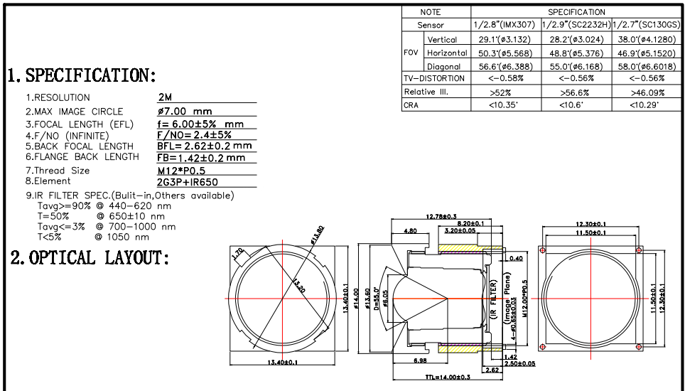 M12 S Mount Full Hd 56 Degree 6.00mm DFov Cctv Camera Lens M12 Security Cameras Lens