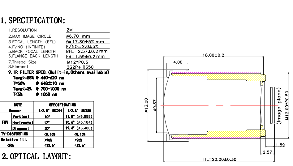 17.80 mm Fisheye lens F2.0 M12 Mount Lens