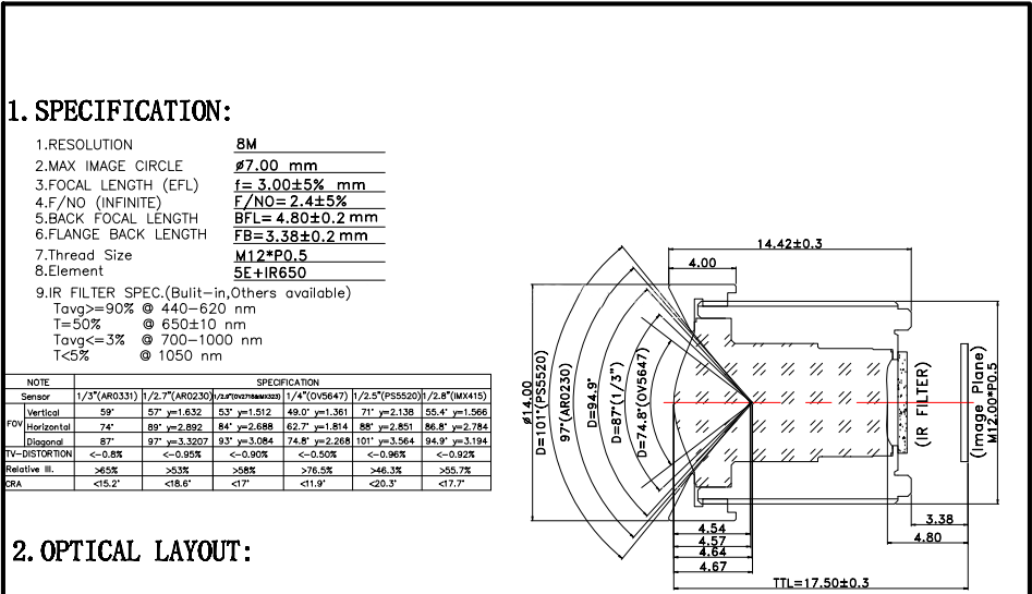 F2.4 M12 Lens Fixed Focus for Vehicle Dvr with 1/2.7" Sensor Wide Angle Car Dash Cam Lens For Car Camera monitoring surveillance