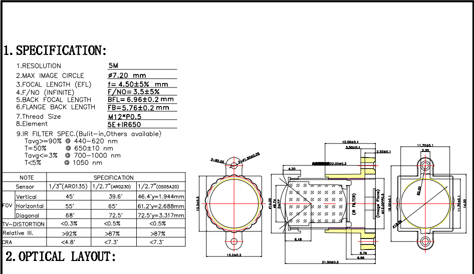 | Image Circle | 1/2.7" AR0230 |
