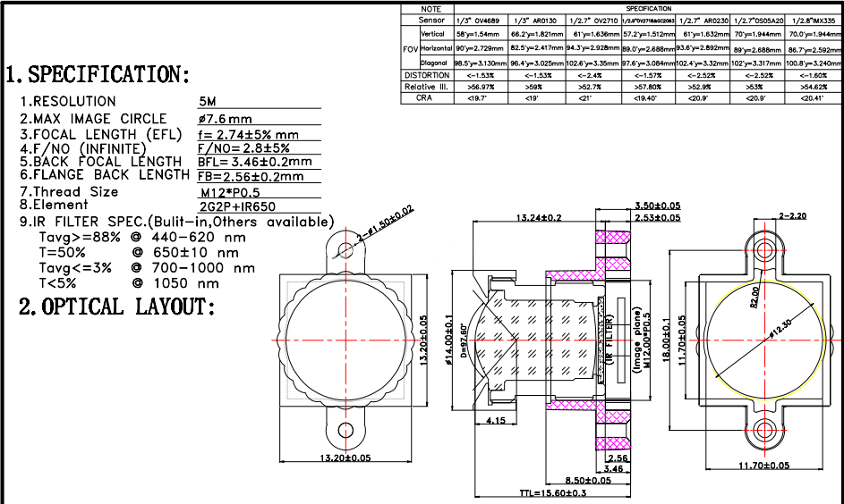1/2.7" 2.74 mm M12 Wide Angle Lens with IR Block for 4K High Class Security CCTV Camera