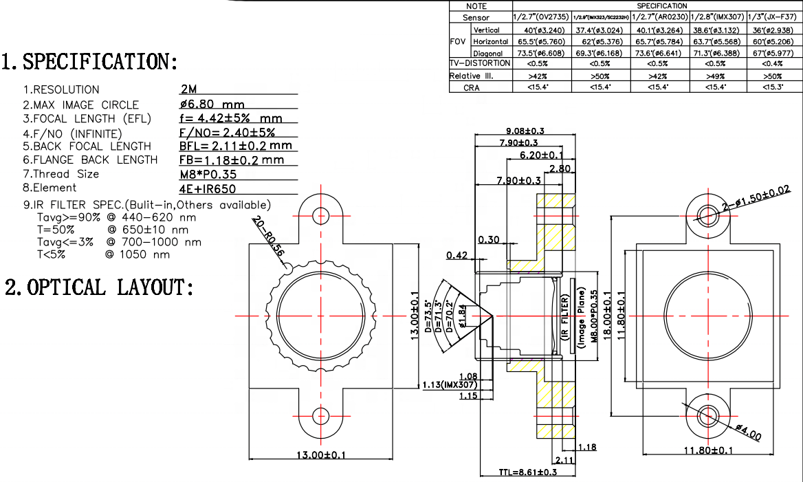 1/2.7" 4.42 mm M12 Wide Angle Lens with IR Block for 4K High Class Security CCTV Camera