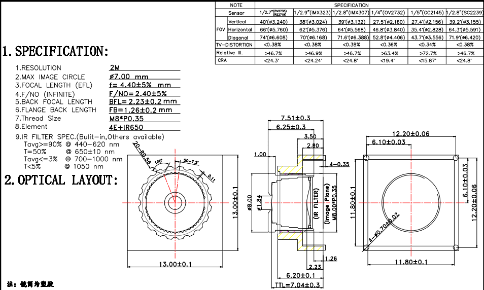 1/2.9" 4.4mm M12 Wide Angle Lens with IR Block for 4K High Class Security CCTV Camera
