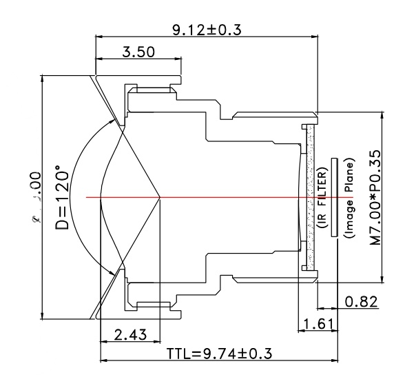 1/6" f2.4 EFL1.17mm Night Vision camera Lens 4E 5MP M7*0.35P wide Lens no Distortion